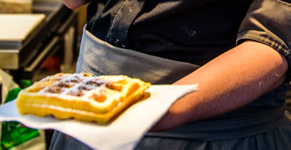 An unserem Ein-/Ausgang findest du verschiedene Gastro-Punkte, an denen du dir einen kleinen Genuss für unterwegs gönnen kannst: wie eine leckere Tasse Kaffee, kühle Getränke, frisches saisonales Obst, Eis – und natürlich: die berühmte Leurs-Waffel!