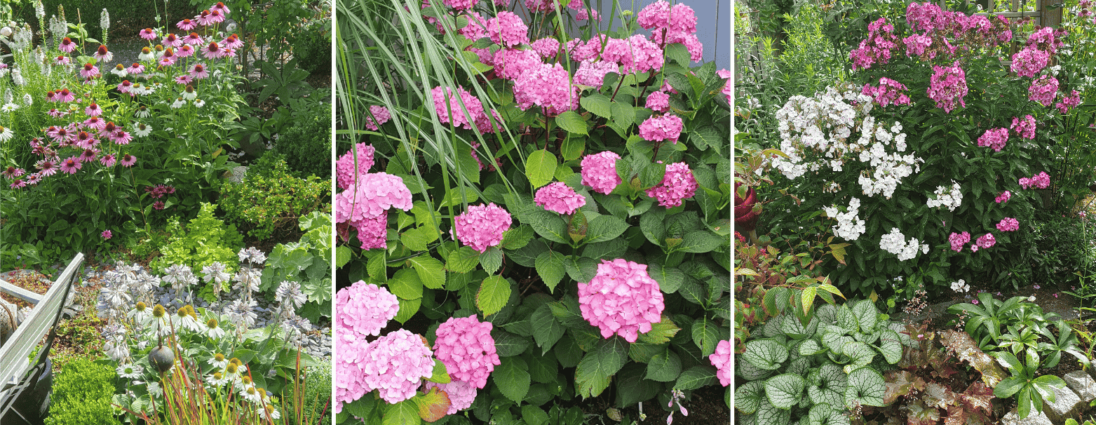 Sonnenhut (Echinacea), Flammenblume (Phlox), Hortensien (Hydrangea) und Hartriegel (Cornus) dürfen in keinem Garten fehlen, meint Toni. Auf den Bildern, die er mitgeschickt hat, sind diese Arten gut zu erkennen!