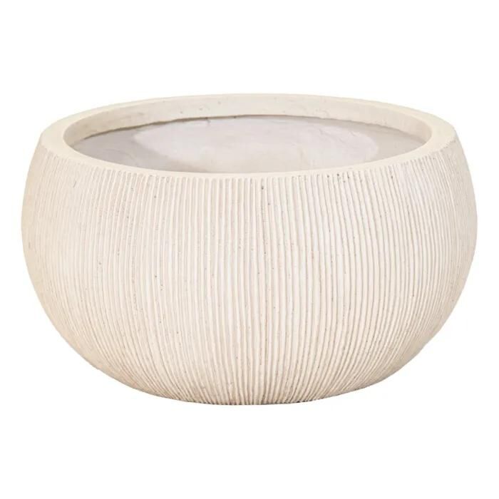 Diese Nora Bullet Bowl Blumentopf in der Farbe Desert mit einem Durchmesser von 31 cm hat eine weiche runde Form und eine warme Ausstrahlung. Perfekt für niedrig wachsende Pflanzen oder Sukkulenten und ideal für den Tisch oder die Terrasse.