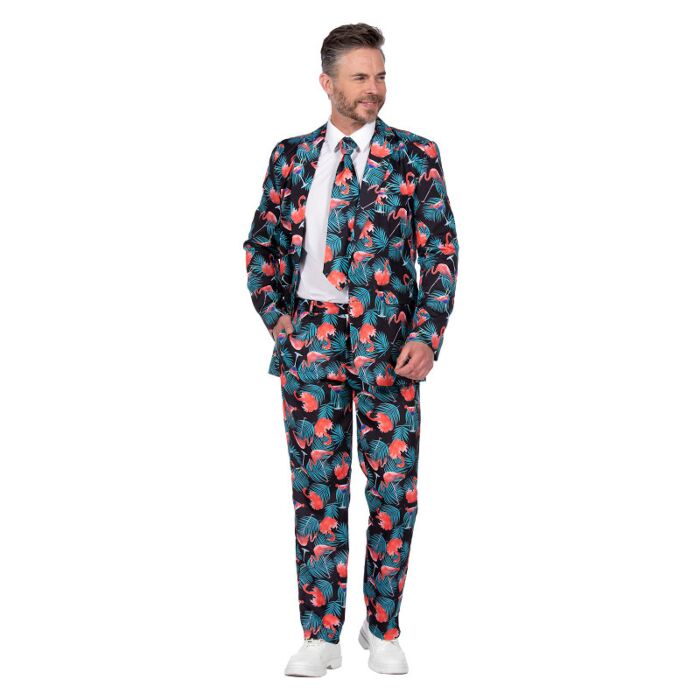 Dieses tropische Flamingo-Anzugset ist eine festliche und farbenfrohe Wahl für den Karneval, mit einem auffälligen Print aus Flamingos und Palmblättern, der Ihr Outfit sofort hervorhebt. Das dreiteilige Design besteht aus einer Hose, einer Jacke und einer passenden Krawatte, sodass Sie auf einen Schlag komplett im Stil sind. Erhältlich im Gartencenter Leurs in Venlo mit einer umfangreichen Karnevalsabteilung voller Inspiration.