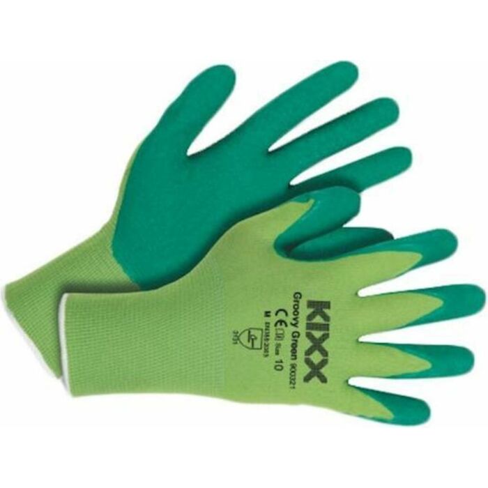 Der KIXX groovy green Gartenhandschuh kombiniert Nylon und Latex. Mit guter Fingerfertigkeit und Griffigkeit bleibt dieser Handschuh sowohl bei nassen als auch bei trockenen Gartenarbeiten effektiv. Das nahtlose Design sorgt für optimalen Komfort und der groovy green ist perfekt für leichte bis mittelschwere Arbeiten.