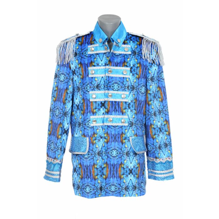 Diese auffällige Blue Silver Herrenjacke bringt Glanz, Farbe und Ausstrahlung in jedes Karnevalskostüm und ist ein echter Blickfang für Vastelaovend bei Tuincentrum Leurs Venlo.