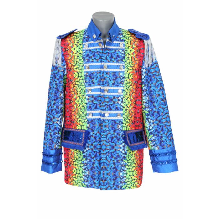 Diese Butterfly Jacke für Herren ist ein echter Blickfang für den Karneval in Venlo dank des farbenfrohen Schmetterlingsdesigns, das von allen Seiten strahlt, und der festlichen blauen Akzente, die der Jacke einen luxuriösen Look verleihen. Die Fransen an den Schultern, die dekorativen Knöpfe und die kunstvollen Muster machen dieses Kleidungsstück zu einem einzigartigen Karnevalshighlight, das perfekt zur fröhlichen Atmosphäre des Vastelaovend passt. Die Jacke trägt sich angenehm und eignet sich ideal für lange Tage voller Umzüge, Feiern und Geselligkeit. Eine fröhliche und stilvolle Wahl, die jedes Karnevalsoutfit aufwertet, erhältlich bei Tuincentrum Leurs Venlo.