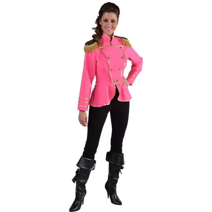 Uniformjacke in rosa Farbe, die Jacke hat goldene Details.